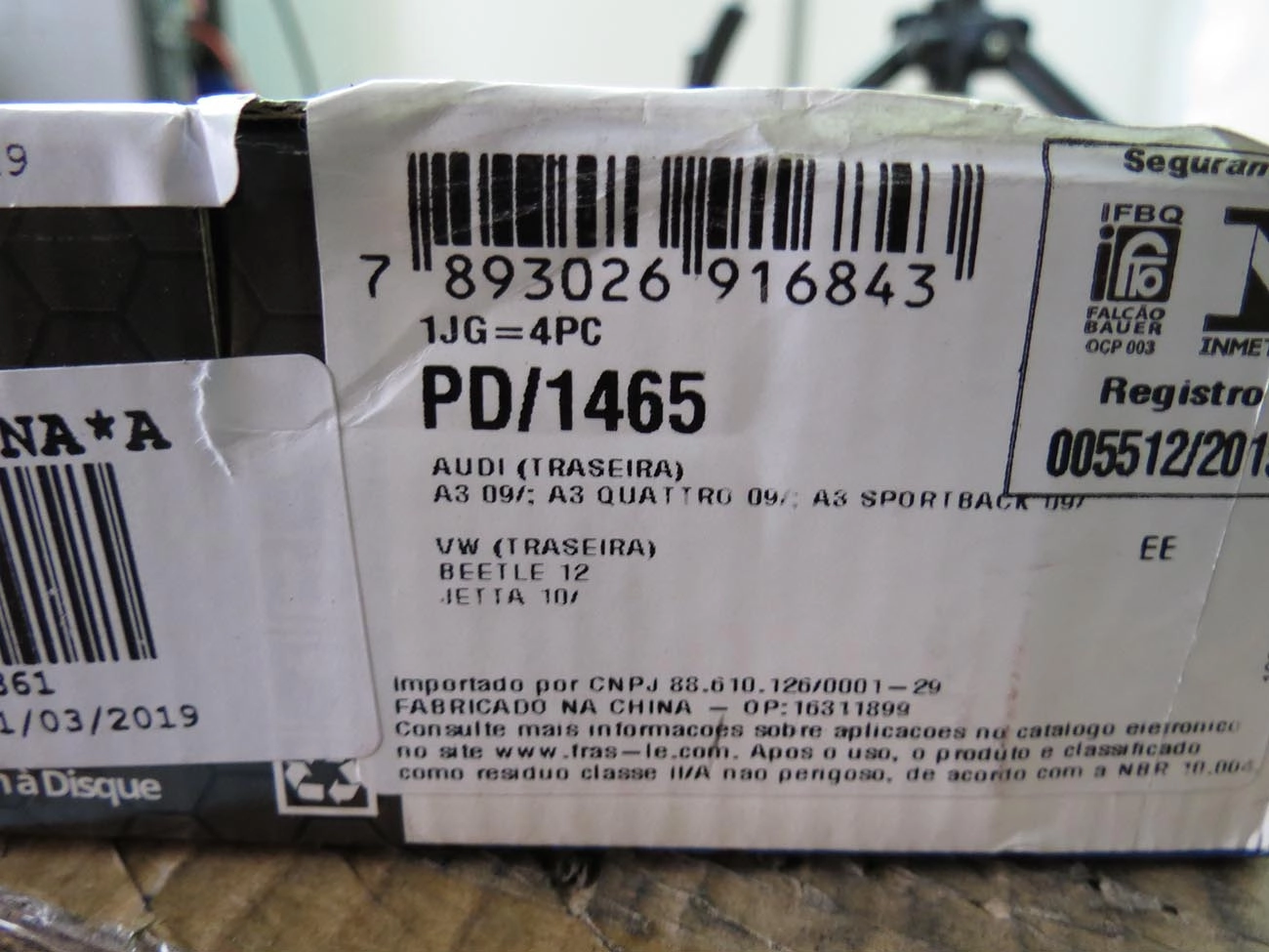 PASTILHA DE FREIO VW GOLF 1.6/2.0 02/ - POLO 1.0/1.6 16V - FOX/CROSSFOX 1.6 - 02/ ARO 14 - M. IGUAIS