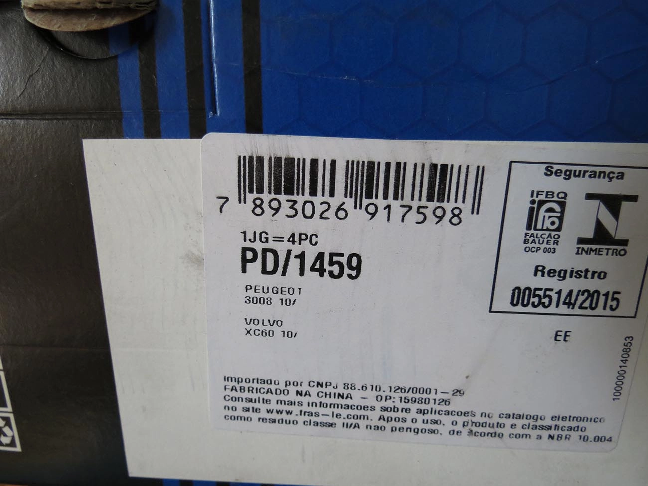 PASTILHA DE FREIO VOLVO XC60 2014/2017 - DIANTEIRA