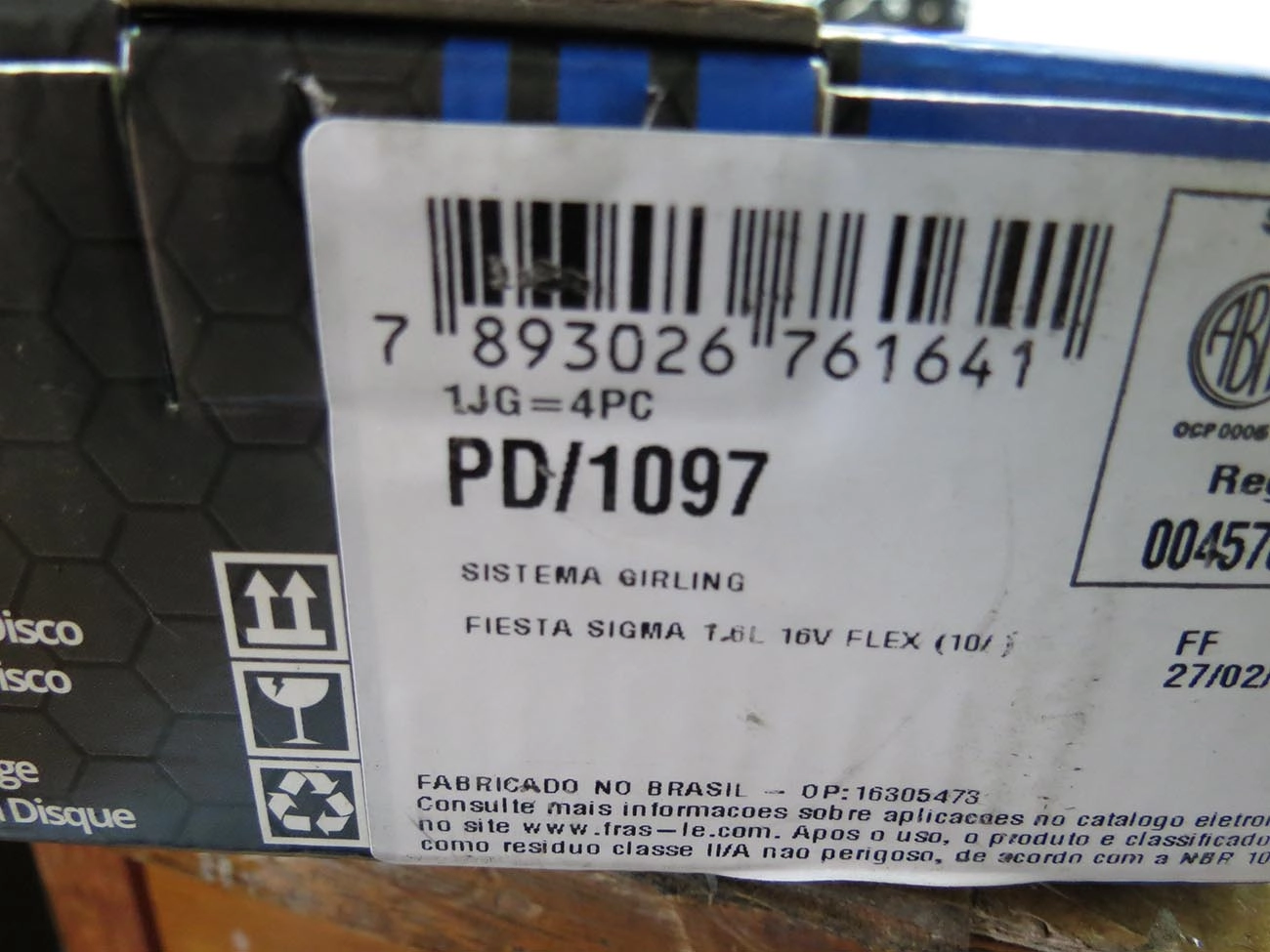 PASTILHA DE FREIO FORD ESCORT/VERONA 1.6 /92 - HOBBY TODOS - C/ALARME 2 FIOS