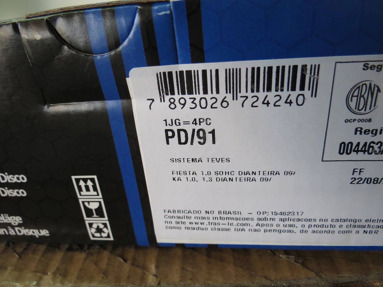 PASTILHA DE FREIO FORD ECOSPORT 04.2009/2012 - NOVO FIESTA 1.0/1.6 03.2009/ - DIANTEIRA