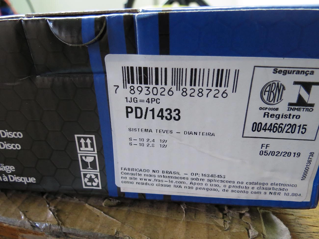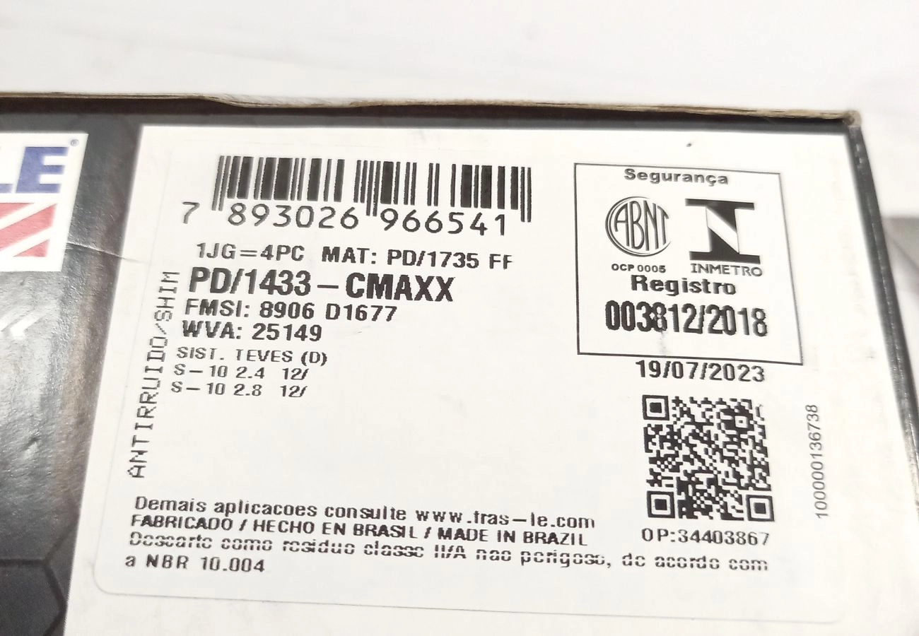 PASTILHA DE FREIO GM NOVA S-10 2.4/2.8 2012/2016 - TRAILBLAZER 2013/ - DIANTEIRA
