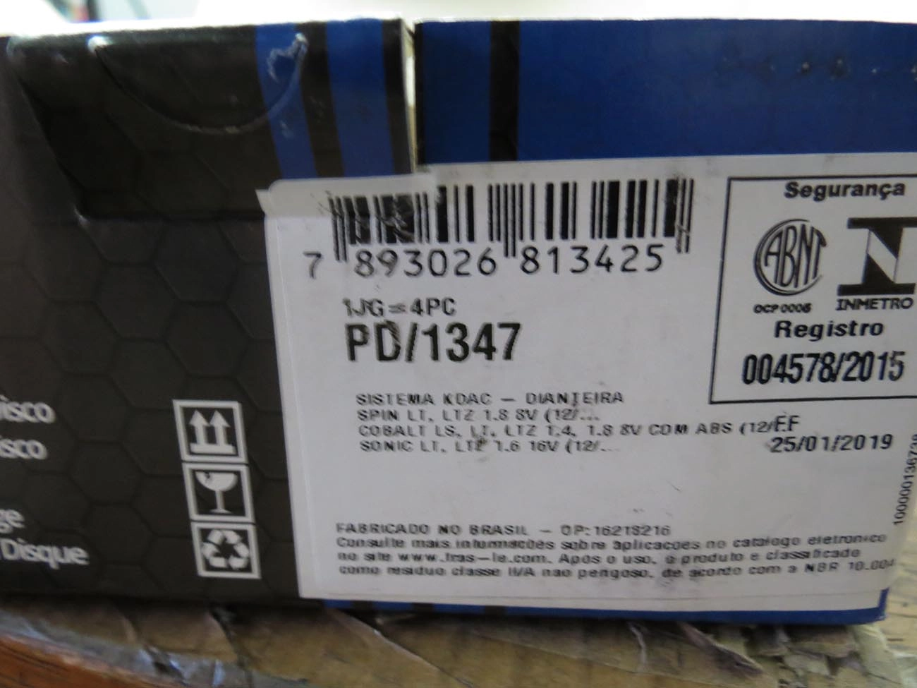 PASTILHA DE FREIO GM SONIC 1.6 12/ - COBALT 1.4/1.8 12/16 C/ABS - SPIN 2012/2016 TODOS - DIANT