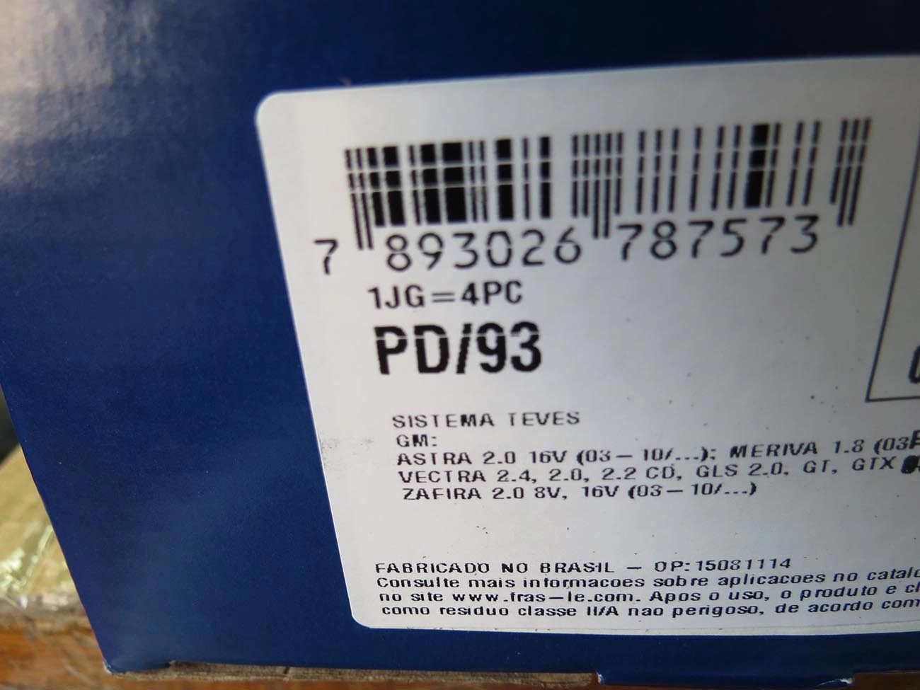 PASTILHA DE FREIO GM MERIVA 2002/2012 ZAFIRA 2001/2012