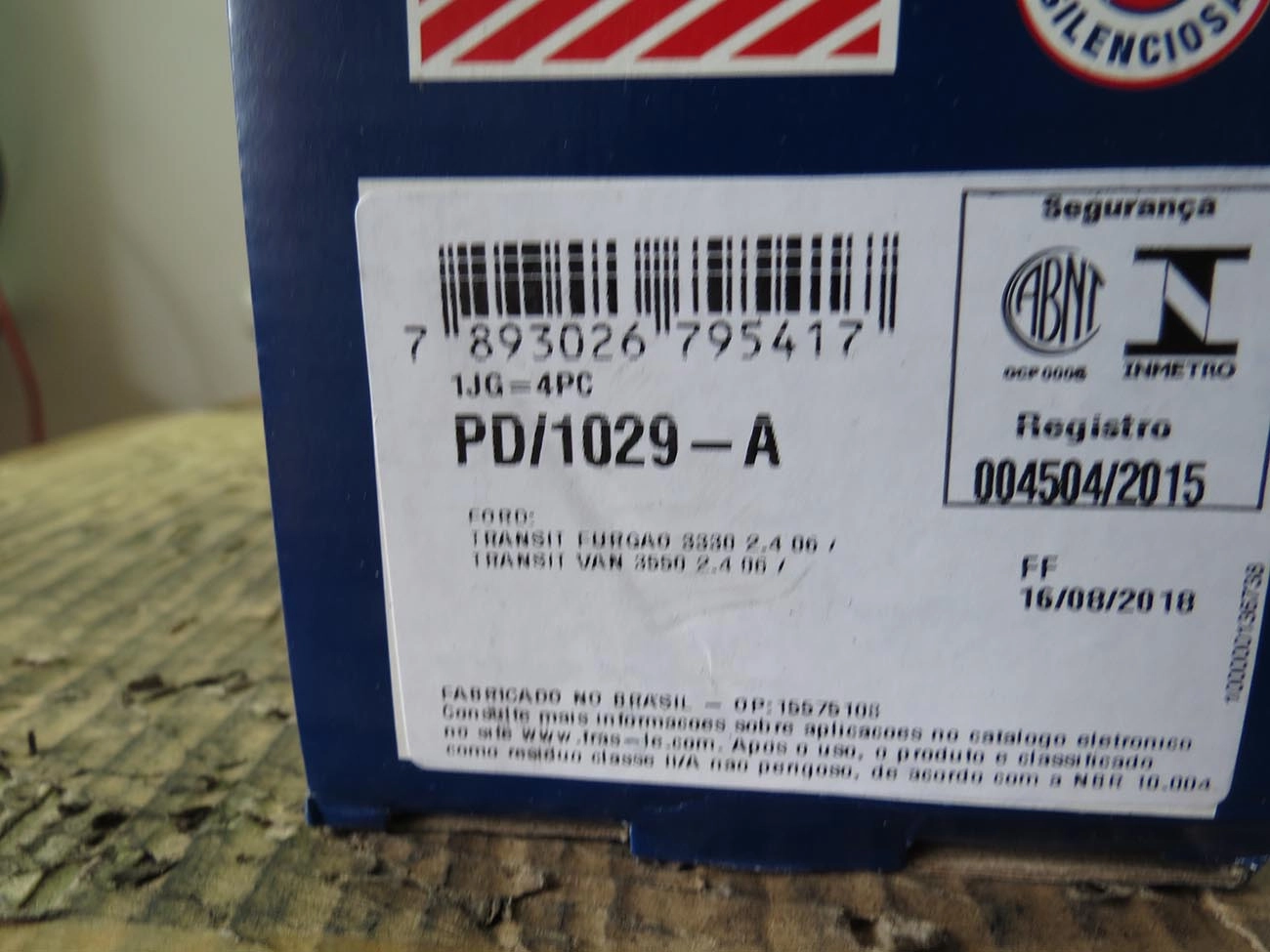 PASTILHA DE FREIO FORD TRANSIT 2006/ - DIANTEIRA