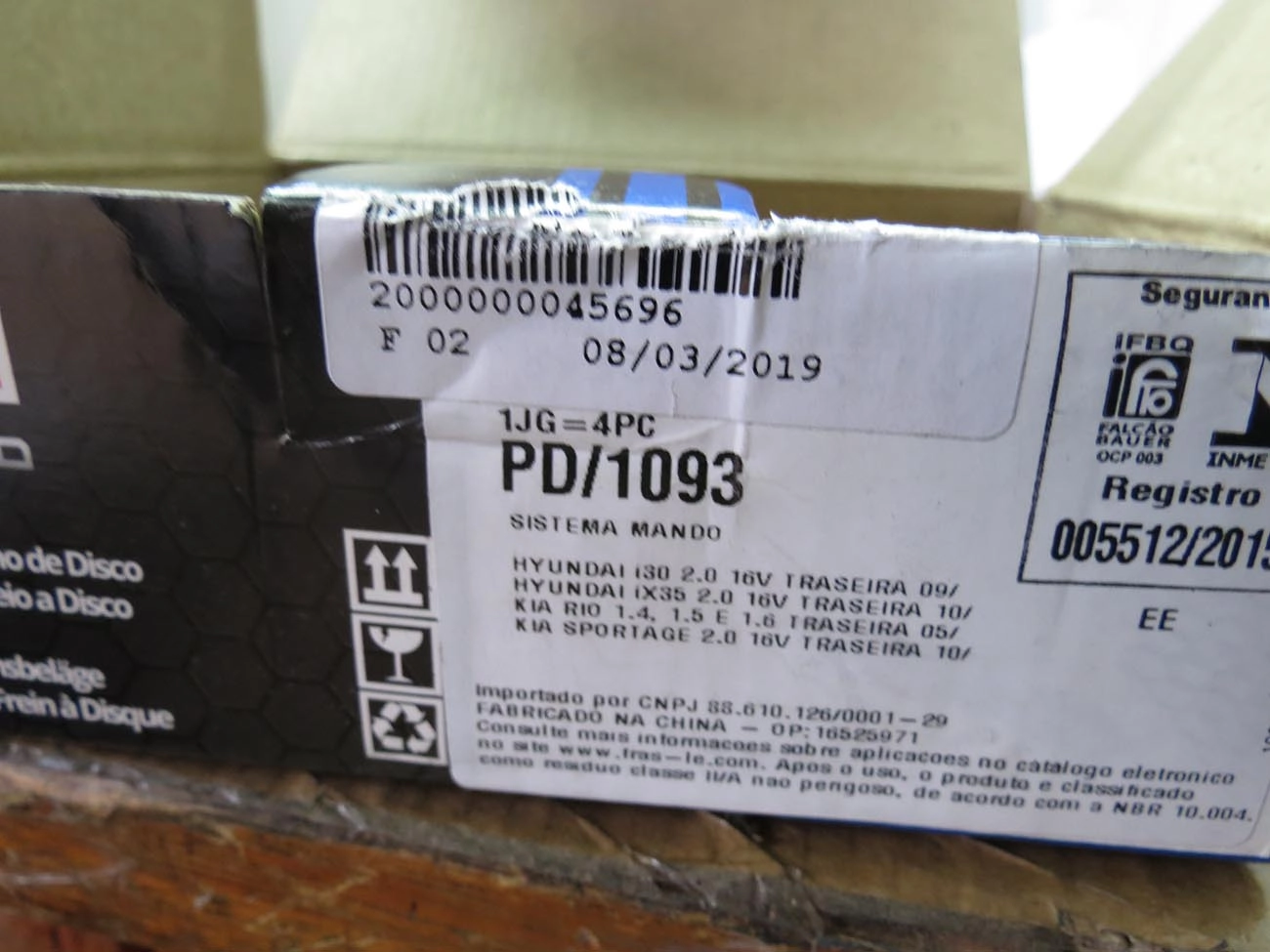 PASTILHA DE FREIO HYUNDAI IX35 2.0 16V 2010/ - KIA CARENS 2.0 2007/ - SPORTAGE 2.0 16V 2010/ - DIANT