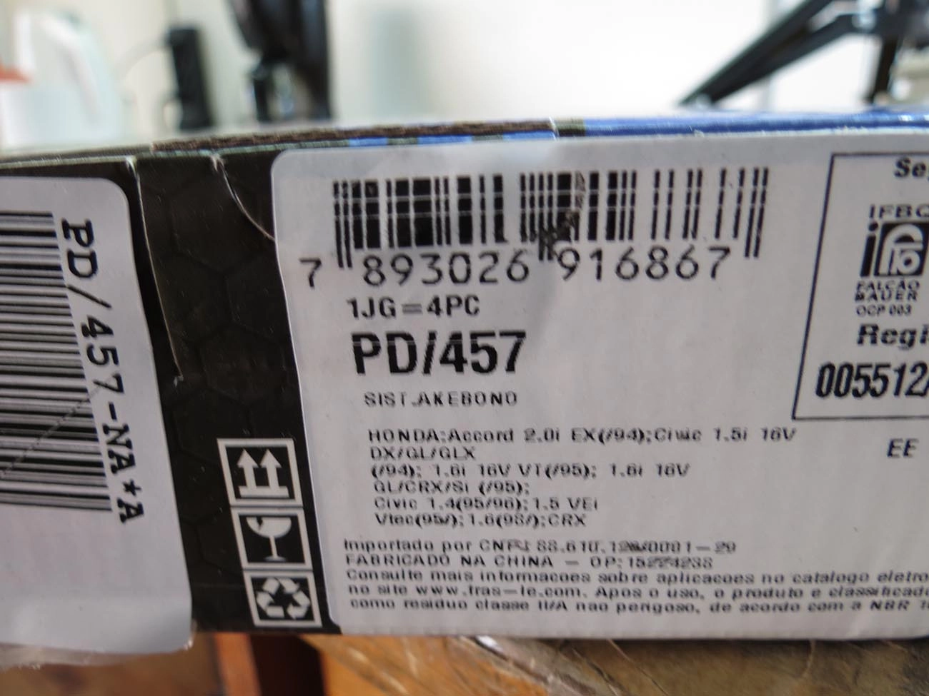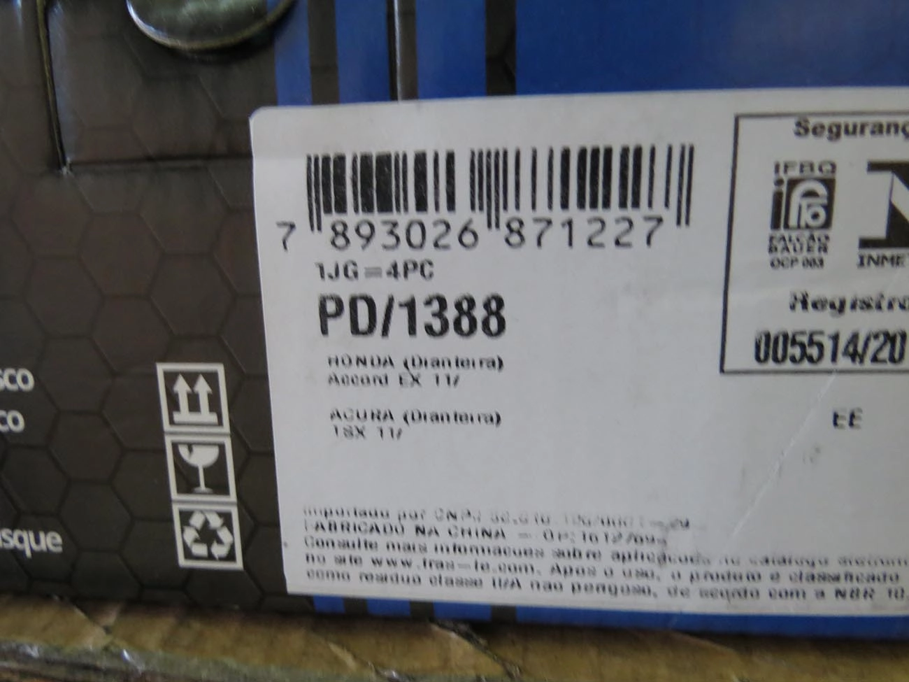 PASTILHA DE FREIO HONDA ACCORD 02/ COUPE 94/99 - CIVIC 05/16 - SUZUKI SX 2.0 2008/2015 - TRASEIRA