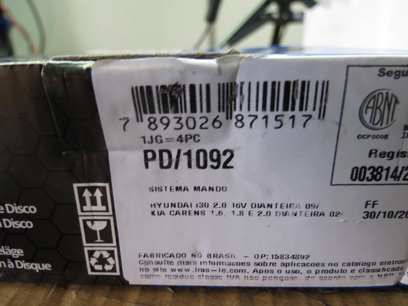 PASTILHA DE FREIO HYUNDAI I30 2.0 16V 2009/ - KIA CERATO 1.6 2009/ - CARENS 02/ - DIANTEIRA